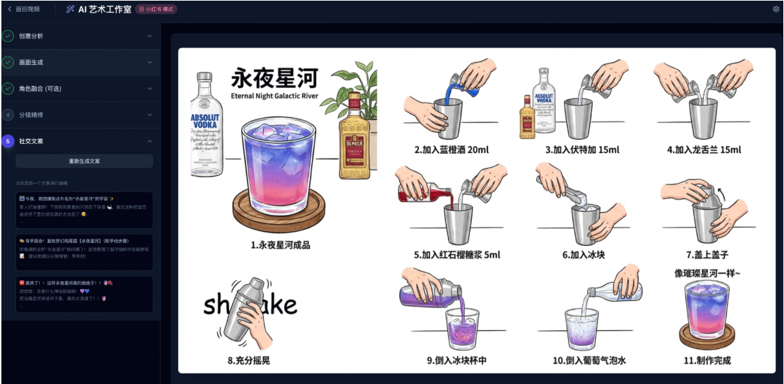 ✔ 全流程闭环:从视频解析、标记、AI 生成到输出素材,步骤清晰且自动化程度高。