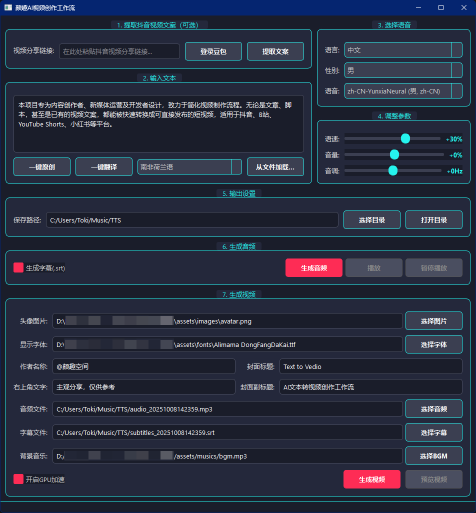 AI-TTV-Workflow 是一款免费开源的AI短视频制作工具,能将你的一段文案或文章自动生成带有人声、字幕、封面的视频,适合抖音、B 站、小红书、YouTube Shorts 等平台。
